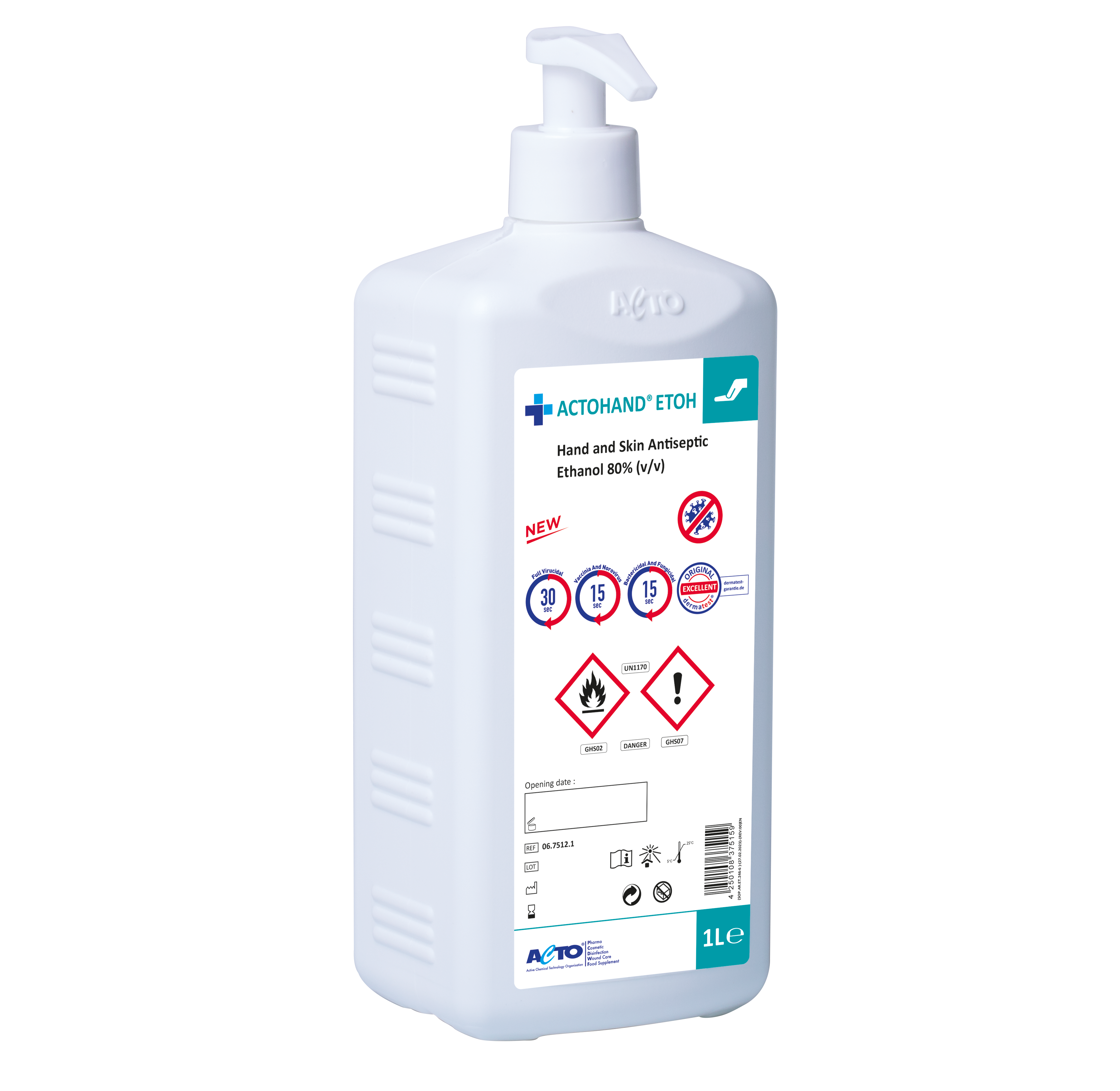 ACTOHAND® ETOH is an alcohol-based hand and skin antiseptic. Suitable for frequent use for hygienic and surgical hand antisepsis. Eliminates bacteria, fungi, mycobacteria and viruses in a short time with its high alcohol content. It does not cause any allergic reaction, does not contain aldehyde, phenol, chlorhexidine and similar additives.