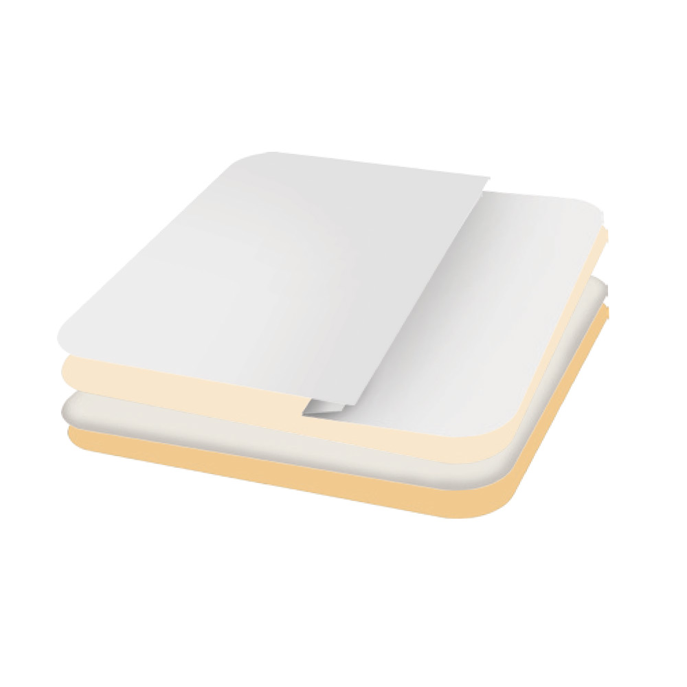 The outermost layer is breathable, bacteria-proof, virus-proof and waterproof polyurethane film that protects the wound from external contamination. Upon absorption of exudates, the foam matrix forms a soft gel that allows easy removal of the dressing.
