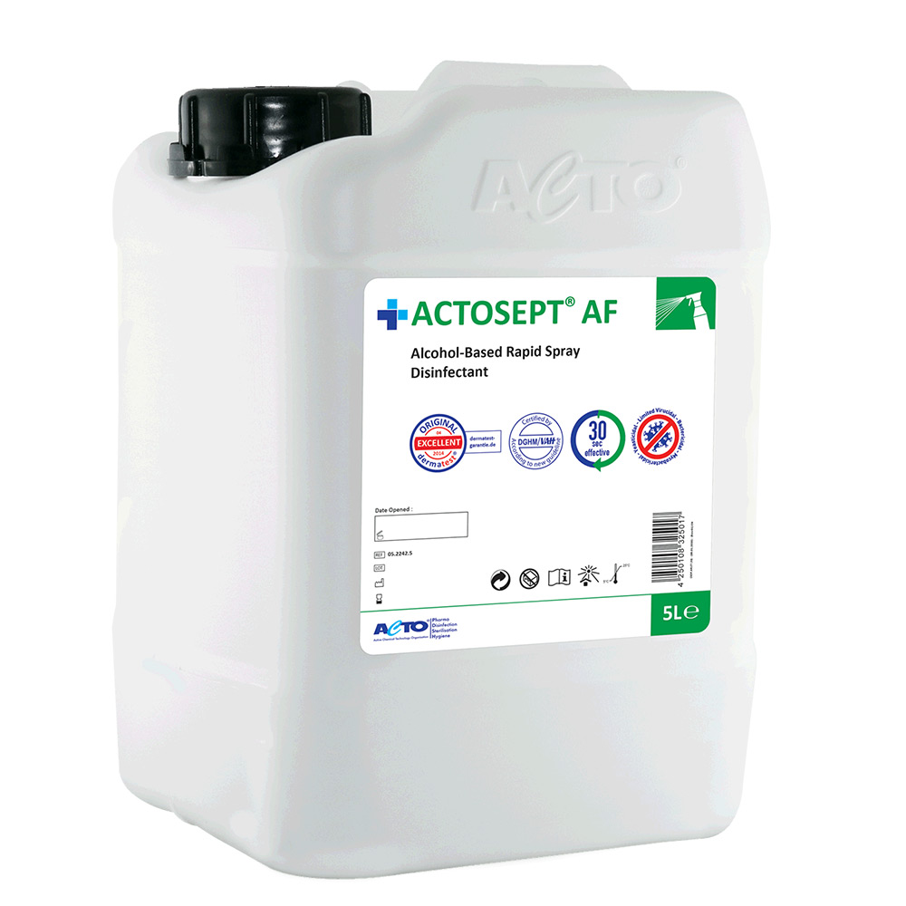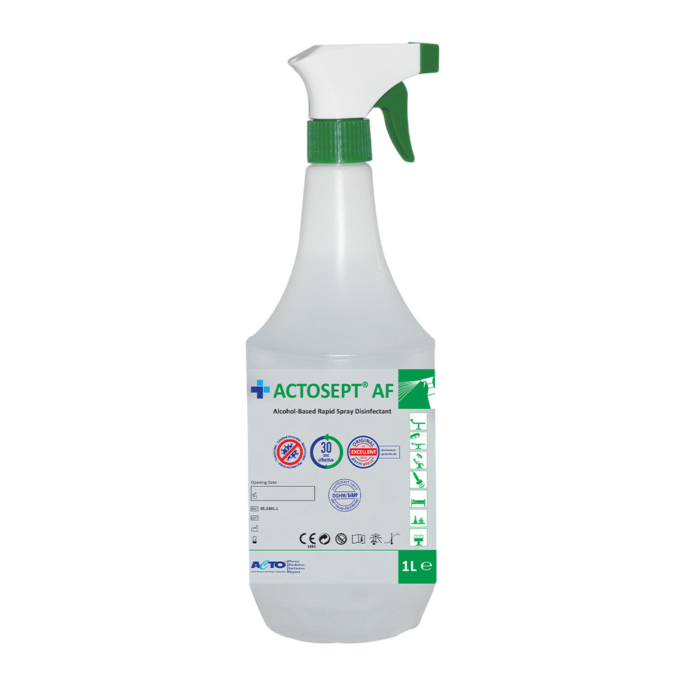 Actosept® AF is a fast acting ready-to-use surface disinfectant which contains alcohol. Ethanol, 2-propanol and didecyldimethylammonium propionate containing product can be used for the fast disinfection of small surfaces with its widely effective spectrum and easy use.It is suitable for cleaning and disinfection of medical device surfaces (stethoscopes, cables, connectors, incubators, probes, etc.) that need to be disinfected frequently.
